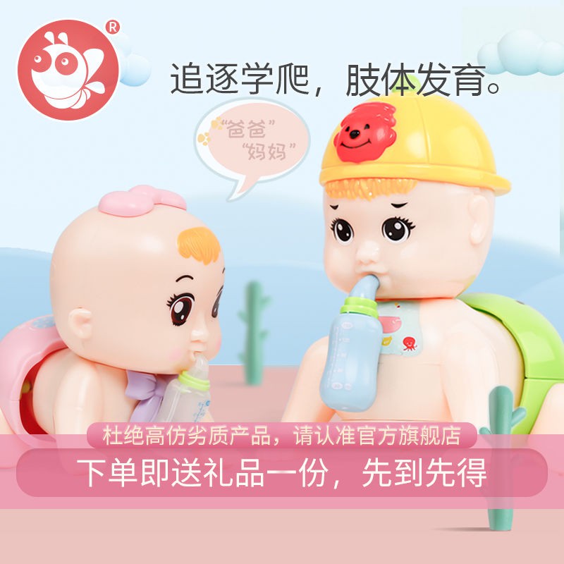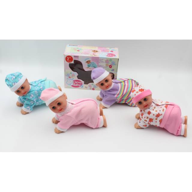 PNG. Merupakan boneka baby yang dapat merangkak pelan, lengkap dengan dot nya, ukuran baby 15x10,5x13cm. Jika si kecil sudah terlihat nyaman dalam posisi tengkurap dan bisa menahan posisi merangkak, mulailah mengajaknya untuk bergerak dengan memberi sebuah stimulus berupa mainan.